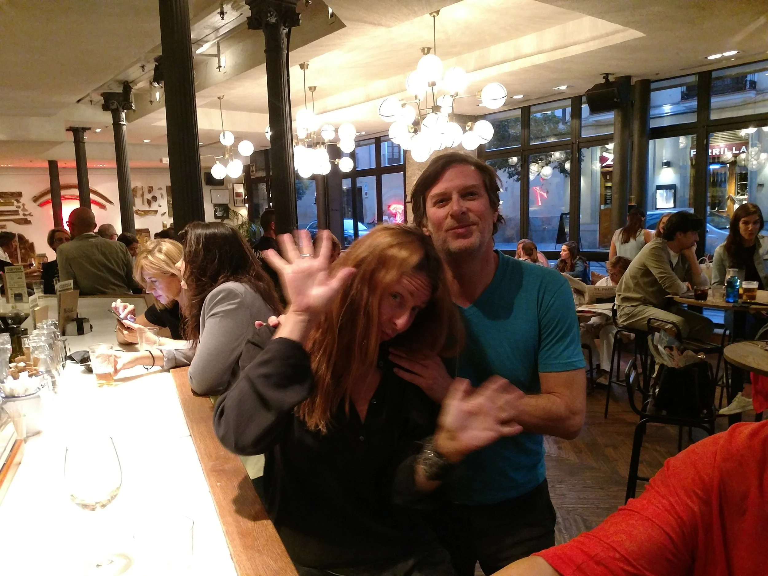 Then we walked to Frida for a light dinner (Calle San Gregorio, 8), which I had walked past earlier in the day! Glass of wine, some small plates to share like anchovies and ratatouile. It got a little chilly, but nothing like chilly in New York. Weather has been really perfect here, not a drop of rain, warm during the day and cool in the evenings. I gave my jacket to Ana, and Murat was literally trembling with cold while I sat in there in short-sleeves. In the little playground in the park homeless people laid out their cardboard and prepared for sleep. There is quite a bit of homelessness here, but it is a big city with a temperate climate, not unsurprising.